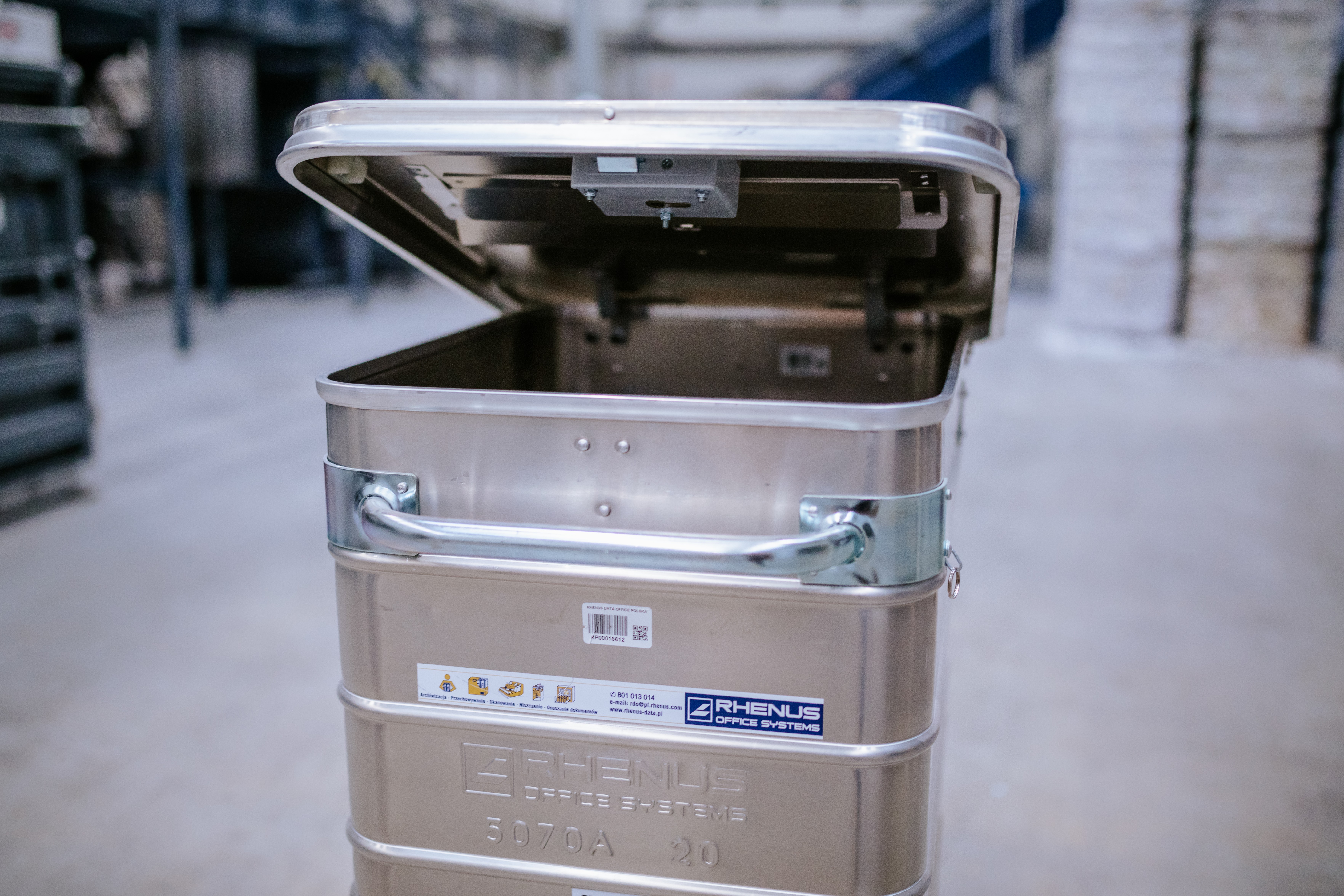 Nous plaçons des poubelles et conteneurs roulants sécurisés chez le client pour collecter, entre autres, le papier, les disques durs et tous les autres types de supports de données. Tous nos conteneurs sont extrêmement sûrs, robustes et verrouillables au moyen d'une serrure intégrée et, si nécessaire, ils peuvent être équipés d'une fente d’insertion. Le client remplit lui-même le conteneur et le ferme.